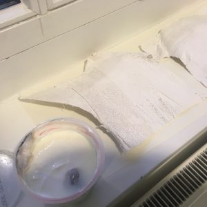 The plaster mold of my body was cut in to pieces and taken by classmates and other people of my school. I asked them if they would want to take care of the part they got and try to grow something on it. Mold, plants, mushrooms or anything else was fine.